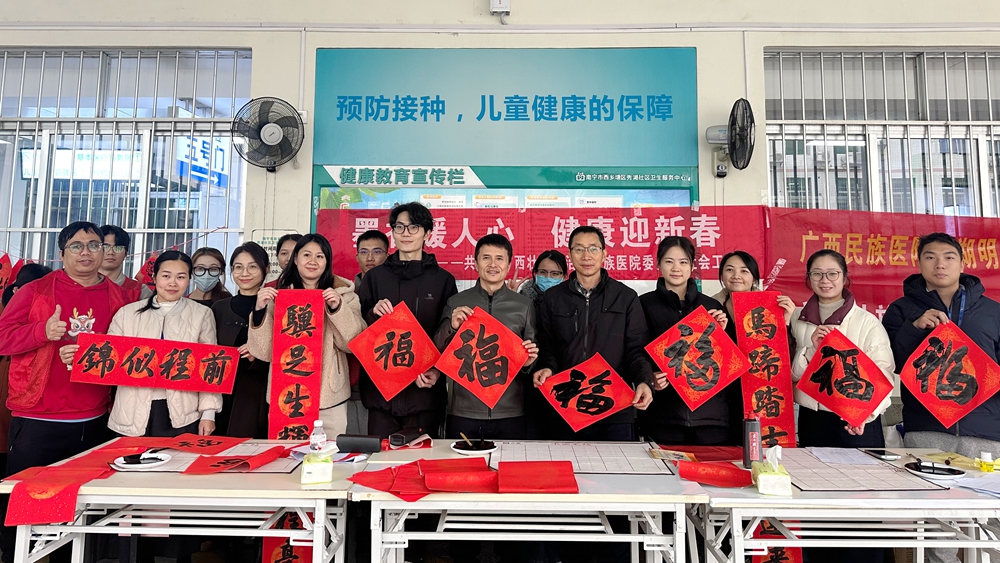 为营造喜庆祥和的新春氛围,将健康服务与新春祝福精准送到群众身边,2月9日下午,我院团委、社工部联合门诊医技联合党支部、秀湖明秀北社区卫生服务中心党支部,在秀湖社区卫生服务中心门口开展“墨香暖人心 健康...
