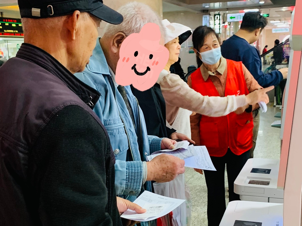 活动当天,党员志愿者们身着鲜艳的红色志愿服务马甲,活跃在门诊大厅、电梯口、收费处、自助服务区等关键区域,为患者提供就诊咨询、科室引导、自助挂号缴费以及报告打印操作指导等贴心服务。