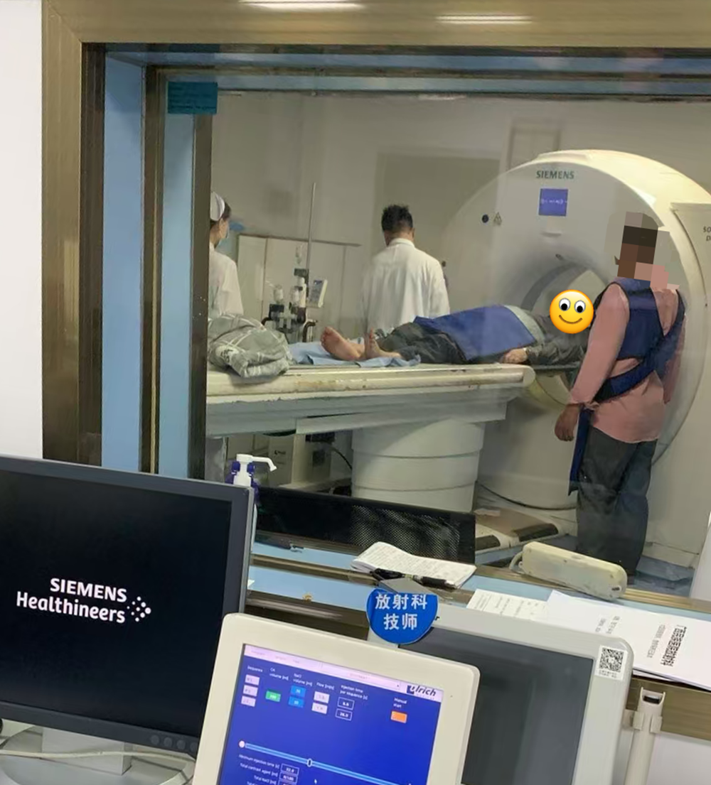 老伴立即叫上家人,并打120送方叔叔至大新县人民医院救治。经紧急CT检查,医生考虑为急性脑梗死,高度怀疑存在脑部大血管闭塞。由于当地医疗条件有限,正在该院下乡支援的广西民族医院神经内科三区梁捷凤医生迅速通过医联体转诊机制协调病人上转,同时传送病历资料,并第一时间上报广西民族医院卒中中心执行总监胡瑞婷主任。