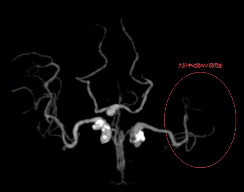 头颈CTA提示左侧大脑中动脉M2段闭塞