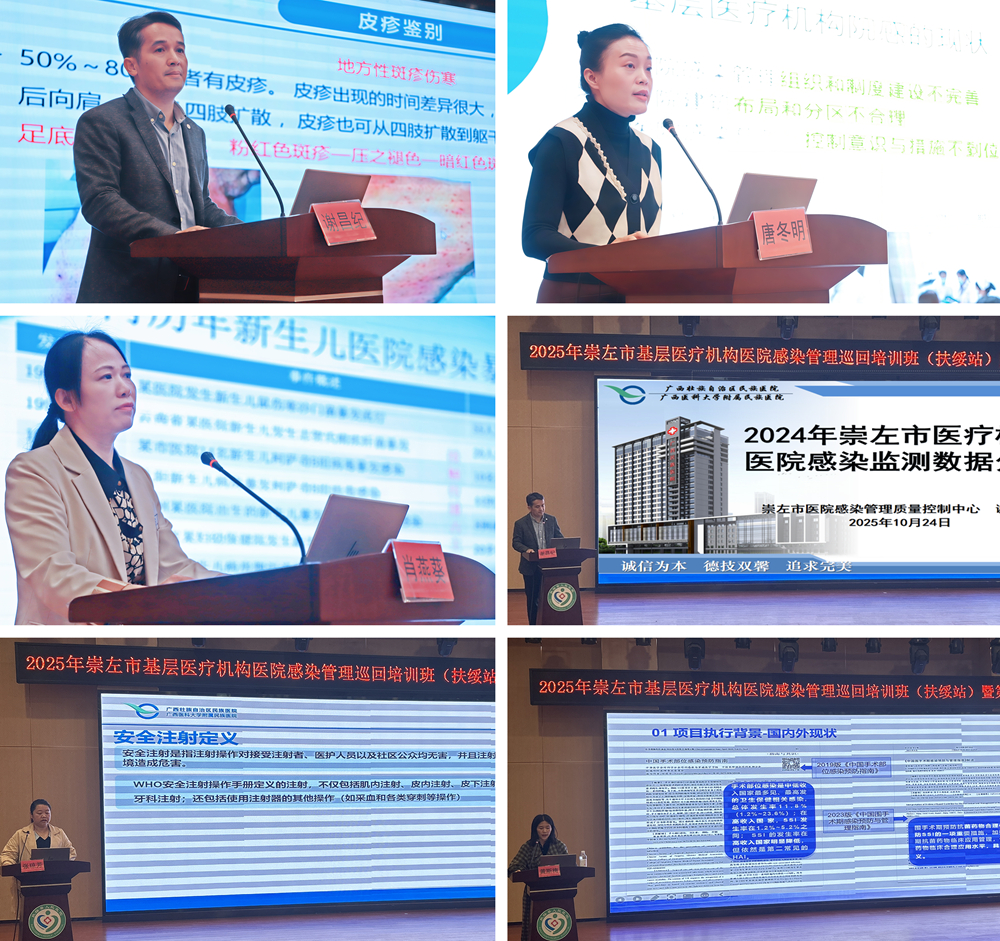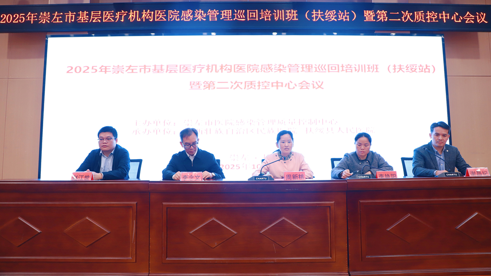 为深入贯彻落实国家关于推动医疗卫生事业高质量发展的决策部署,进一步加强医院感染管理质量控制体系建设,全面提升基层医疗机构医院感染预防与控制能力,切实保障医疗质量与患者安全,2025年10月24日,由崇左市医院感染管理质量控制中心主办,广西壮族自治区民族医院与扶绥县人民医院共同承办的“2025年基层医疗机构医院感染管理巡回培训班(扶绥站)暨第二次质控中心会议”在扶绥县人民医院圆满落幕。