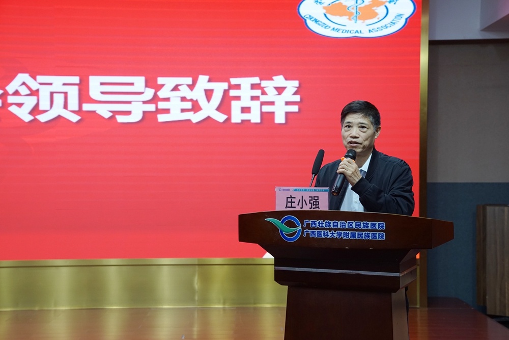崇左市医学会常务副会长庄小强在致辞中表示,分会成立填补了崇左市血液净化专业学术组织的空白,在全区各市中处于领先地位,希望分会以此次成立大会为契机,发挥桥梁纽带作用,推动区域内医疗资源整合与技术协同,为保障群众健康、促进医疗卫生事业发展作出更大贡献。