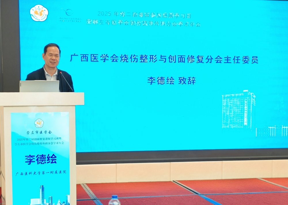 会议在崇左市医学会烧伤整形外科分会主任委员、广西民族医院烧伤整形外科主任李琳的欢迎辞中拉开帷幕。广西民族医院党委委员、副院长周志宇在致辞中表示,我院高度重视学科建设与发展,支持多学科交融和学术交流,为医护人员搭建高水平的学术平台,推动创面修复与烧伤整形领域的技术创新与临床应用。随后,广西医学会烧伤整形与创面修复分会主任委员李德绘致辞,他强调要不断加强学术交流与合作,促进创面修复与烧伤整形领域学科发展,提升整体医疗水平,更好地服务患者。