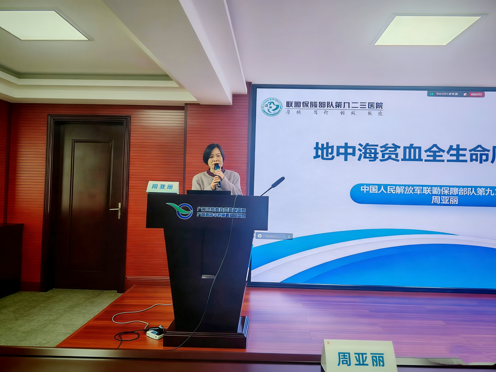 “地中海贫血全生命周期管理”专题由大新县人民医院农志锋教授主持,中国人民解放军联勤保障部队第923医院周亚丽教授担任讲者。周亚丽教授结合广西地中海贫血高发的地域特点,从早期筛查、精准诊断、规范治疗到长期随访管理,构建了一套全面系统的地贫诊疗管理体系。该环节讨论中,宁明县人民医院何燕教授、崇左市中医医院苏彩云教授、崇左市人民医院龙夏妮教授各抒己见,为优化地贫诊疗质控方案贡献了宝贵意见。