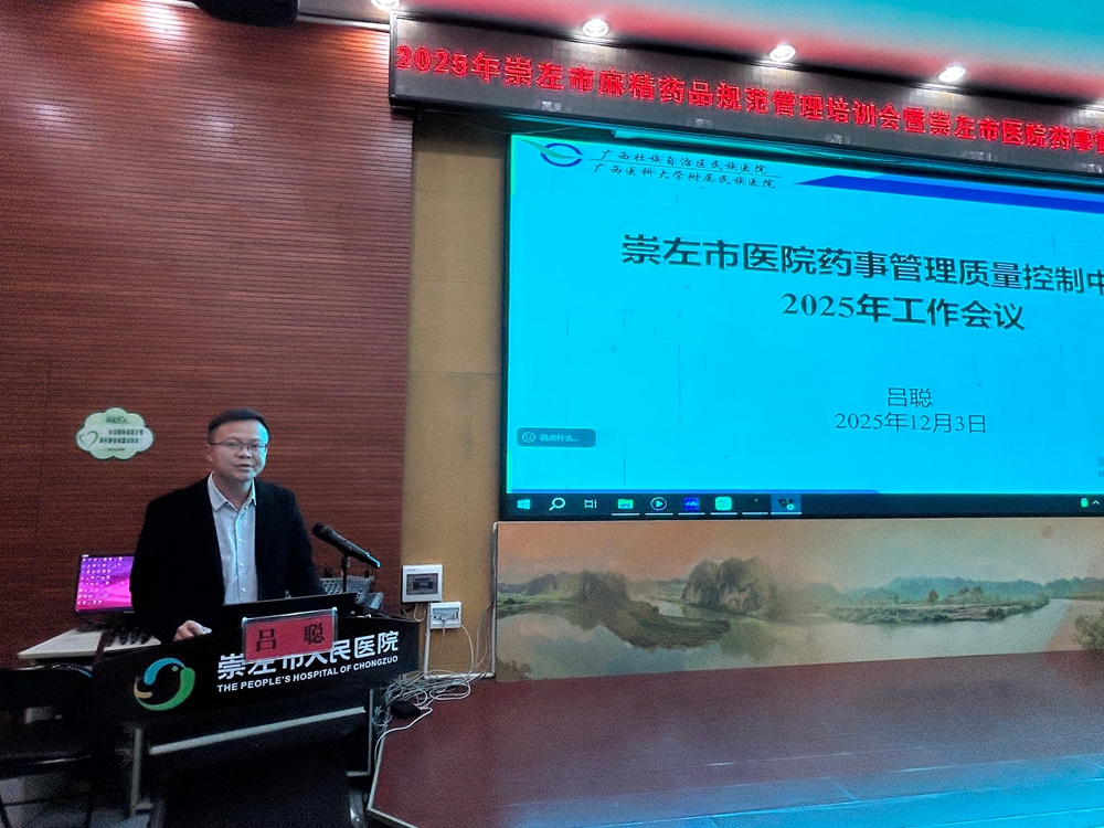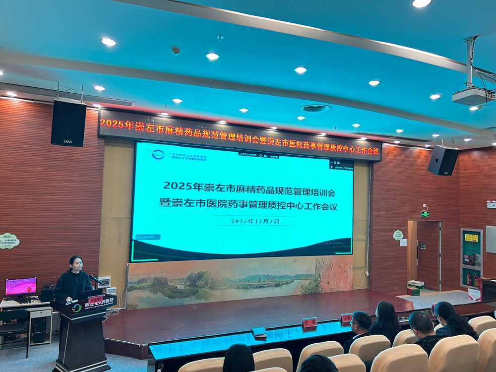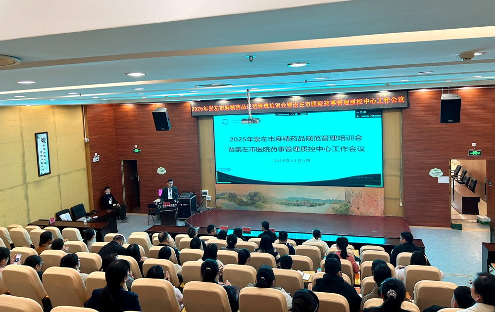 为进一步加强崇左市麻精药品管理工作的规范化、精细化与信息化建设,持续提升医疗机构药事管理质量控制水平,2025年12月3日,由崇左市卫生健康委员会主办、崇左市医院药事管理质控中心承办的“2025年崇左市麻醉药品和精神药品规范管理培训会暨崇左市医院药事管理质控中心工作会议”在崇左市人民医院顺利召开。