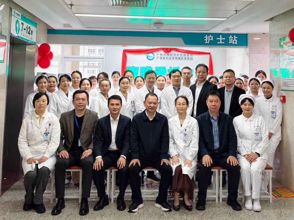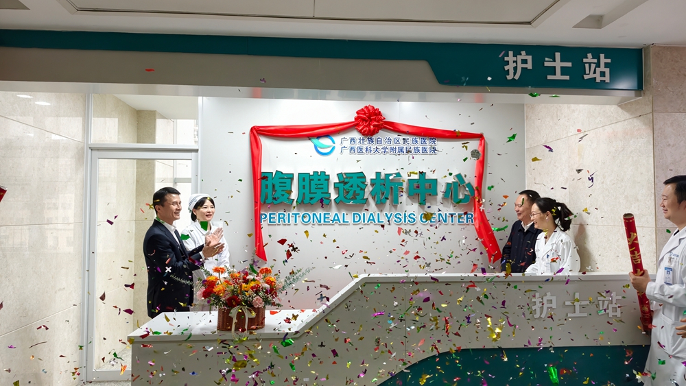 随着终末期肾病患者数量的持续增长,为了提高这些患者的生存质量并帮助他们更好地回归家庭和社会生活,腹膜透析作为一种有效的替代治疗方案,正逐渐成为患者的首选。2025年12月11日上午,广西民族医院肾内风湿免疫科“腹膜透析中心”正式揭牌成立。作为崇左地区率先挂牌的腹膜透析中心,这标志着我院肾脏替代治疗迈入“血液透析+腹膜透析”双轨并行的新阶段,将为终末期肾病患者提供更便捷的治疗选择。